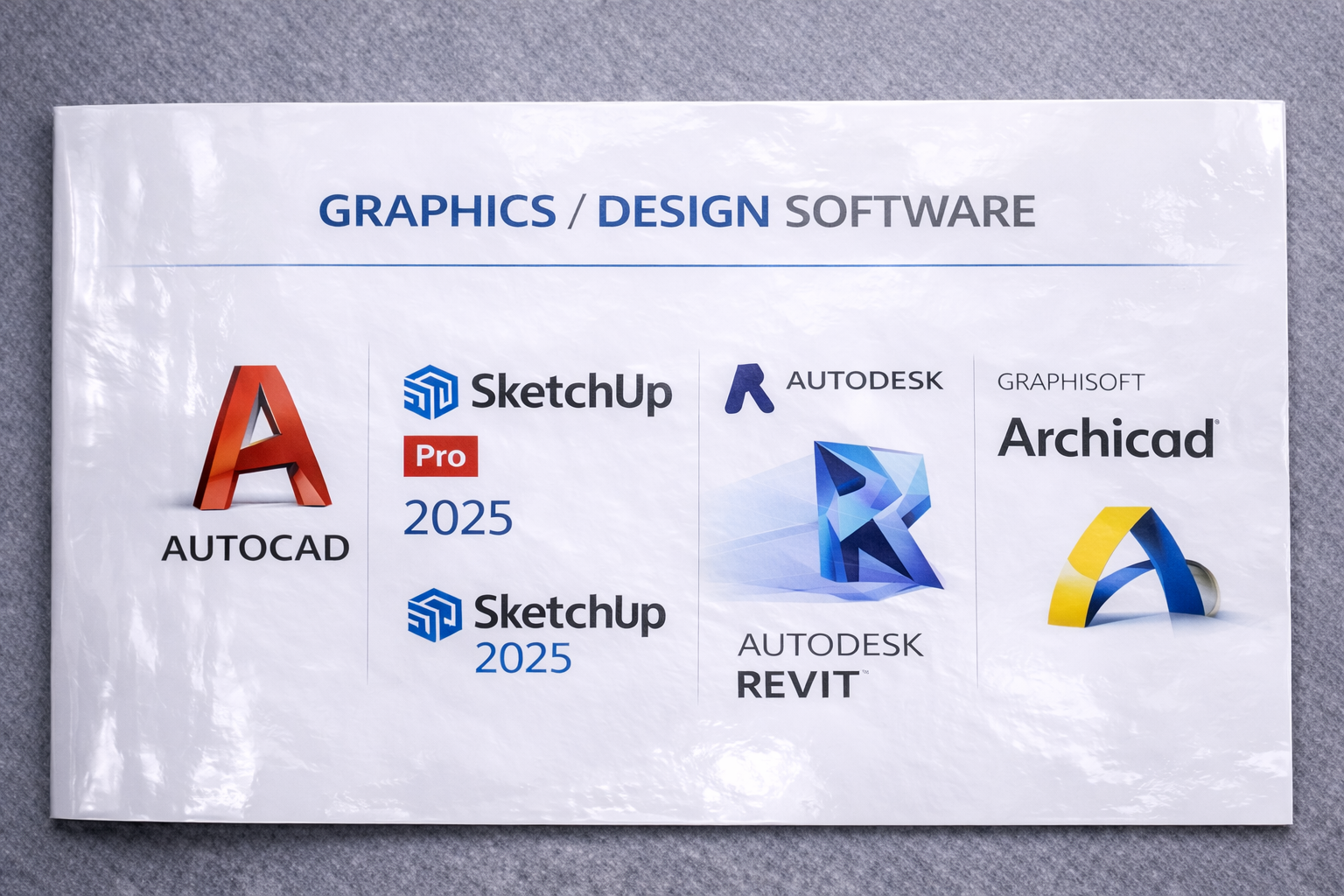 Adobe Photoshop, Illustrator, AutoCAD, SketchUp 3D