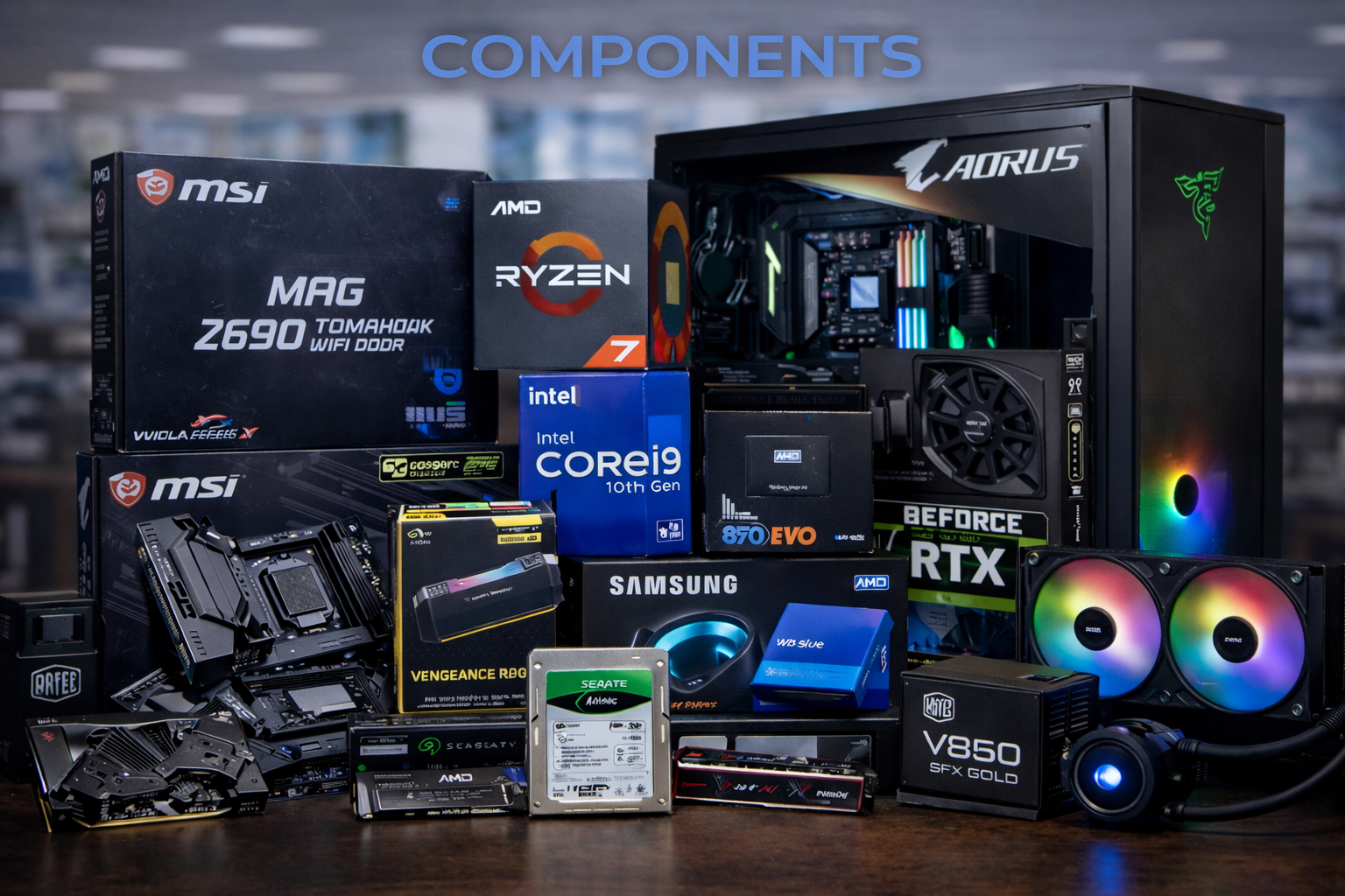 CPU, Motherboard, Graphics Card, RAM, Internal SSD/HDD, PSU, PC Case, Cooling